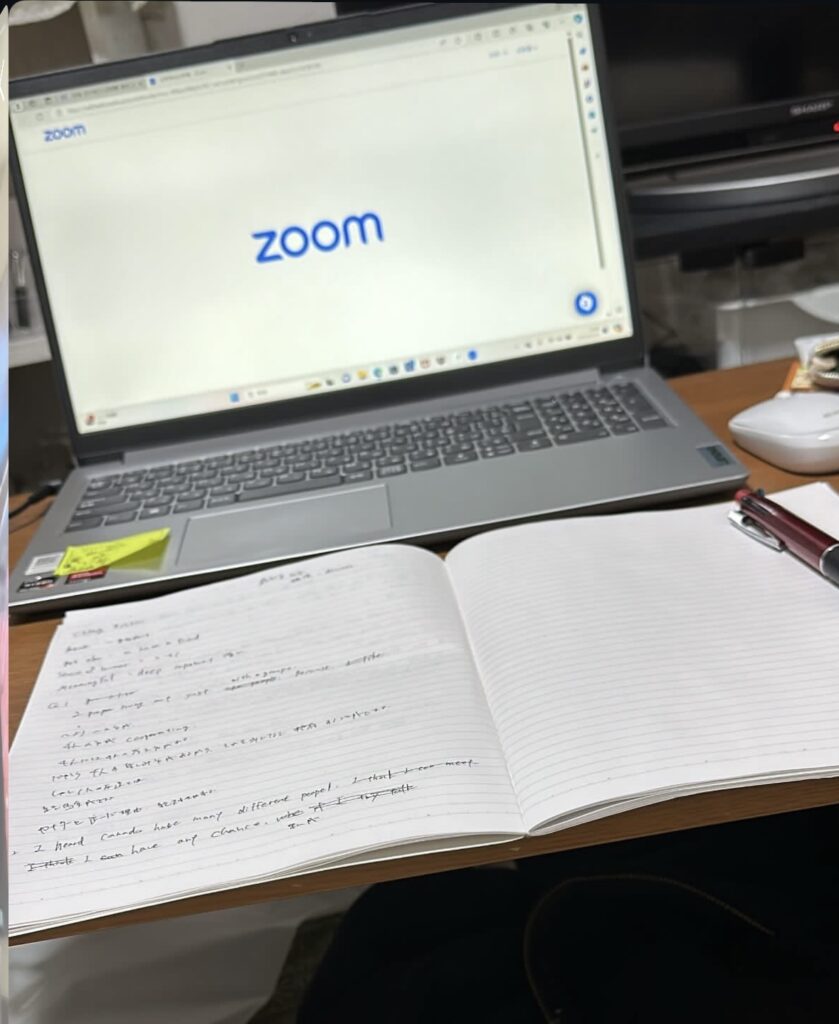 その後夢カナEnglishではオンライン英会話が開始。10人ほどの他の夢カナ生徒とともにその日のテーマに沿って勉強していきます。色んな国の色んな先生がいて、先生の国について聞いたり、他の生徒の生活やワーホリに向けた話を聞いたりと、本当に学校に行っている気分で、授業を受けていました。英語って完璧じゃないと伝わらない、って思ってたけど案外そうではなく、伝えようとしたら相手も理解してくれる、私が話すことがまず会話の第一歩になるんだ、ということも学びました。文法の基礎も最後に勉強したのは学生のころで、ほぼ忘れていましたが、文法に特化した授業や発音の授業、国々の発音の違いについても学ぶことができるので、本当にこんな贅沢な経験をできて私は幸せでした。